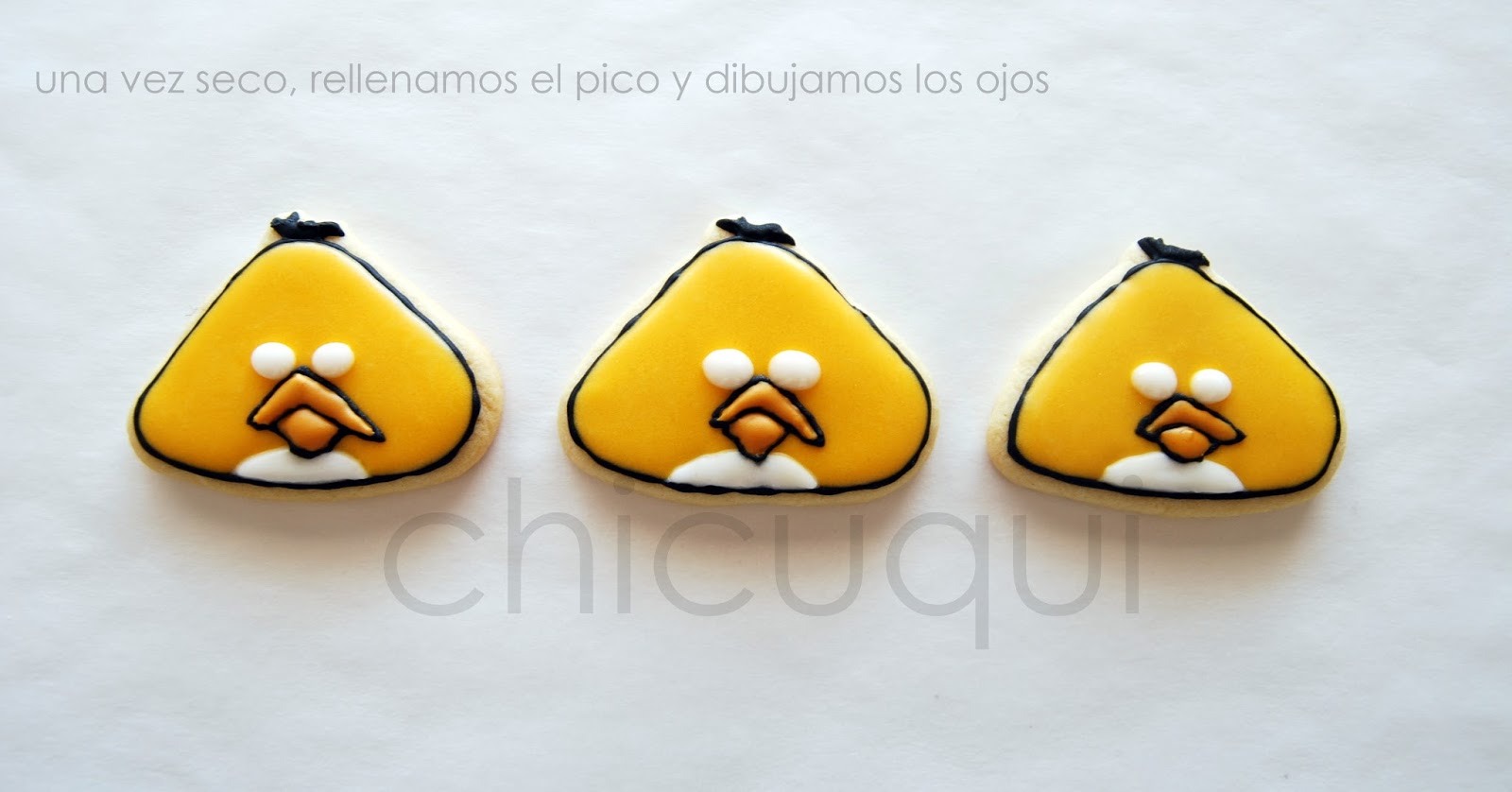 marcamos el contorno, dibujamos el pico y rellenamos la galleta decorada