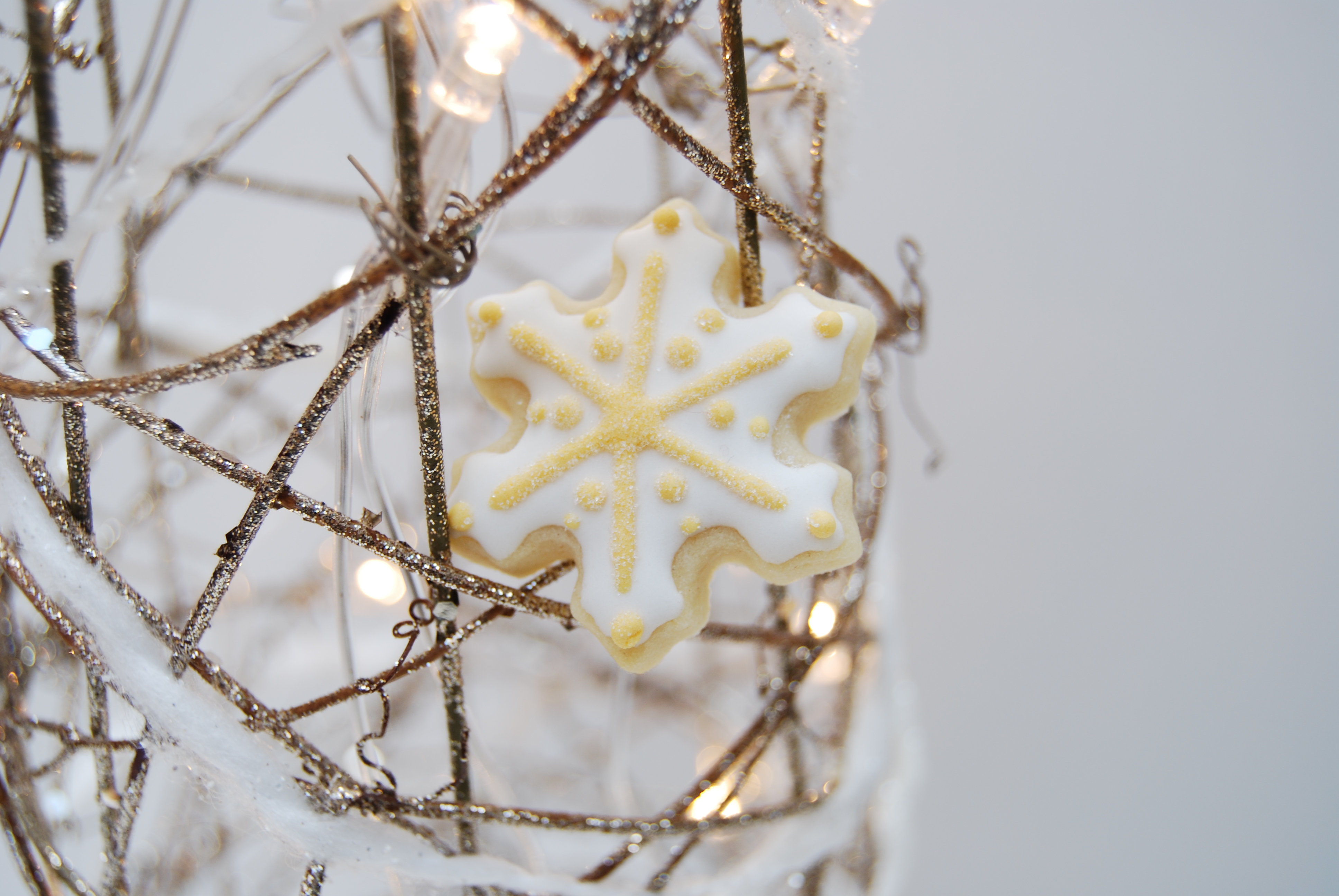 El árbol de las fotos (aparece tumbado ya que no había manera de colgar las galletas) es de Fronda (Madrid) y lleva las luces incorporadas, es precioso.