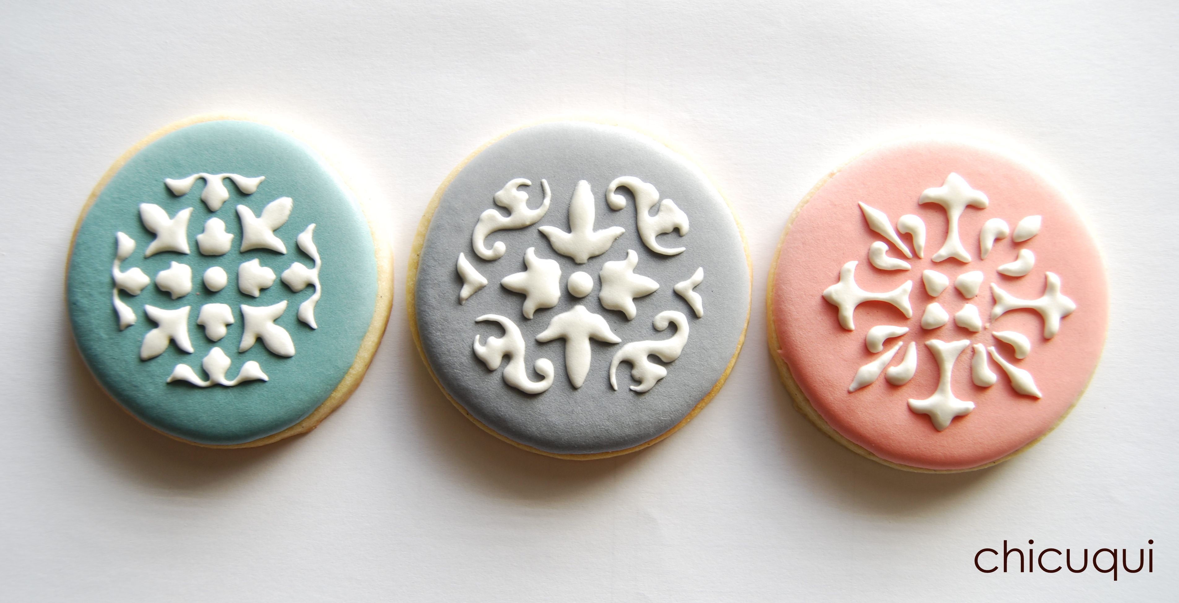 1. Hola Andrea, es cierto que son carísimos los stencils. En estas galletas decoradas, los que yo he utilizado, son de unos fascículos de la editorial Planeta de Agostini que se llama Pastelería creativa. Podrías hacerte unos caseros utilizando un plástico semi rígido y con una troqueladora, hacer los agujeros. Si quieres, en otro post te enseño cómo hacerlo. Gracias por tu comentario.