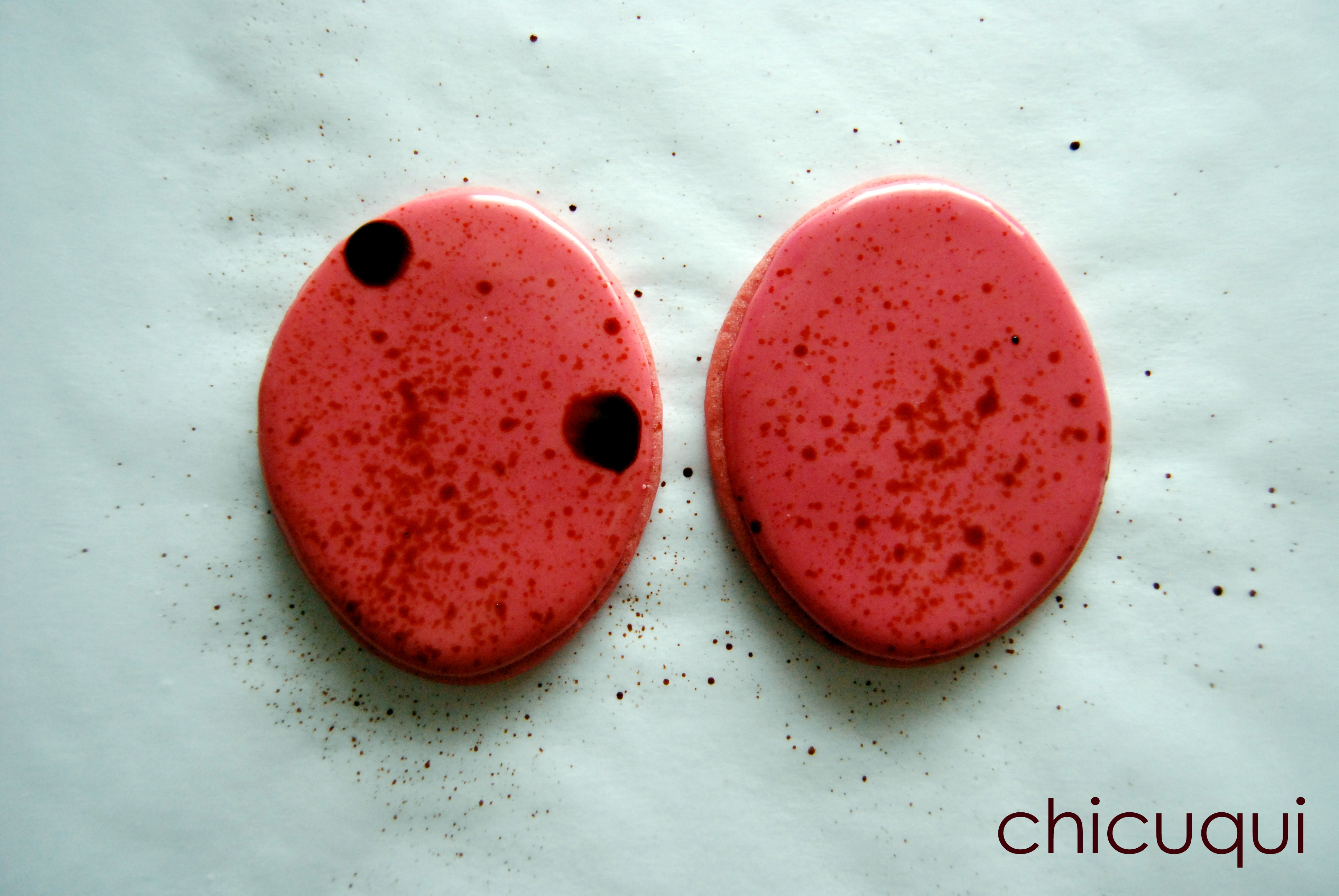 Los puntos grandes que véis son gotas enormes que cayeron. Os dije que estas galletas decoradas eran un poco un experimento, pues no deberían de haber caído esas gotas tan grandes.