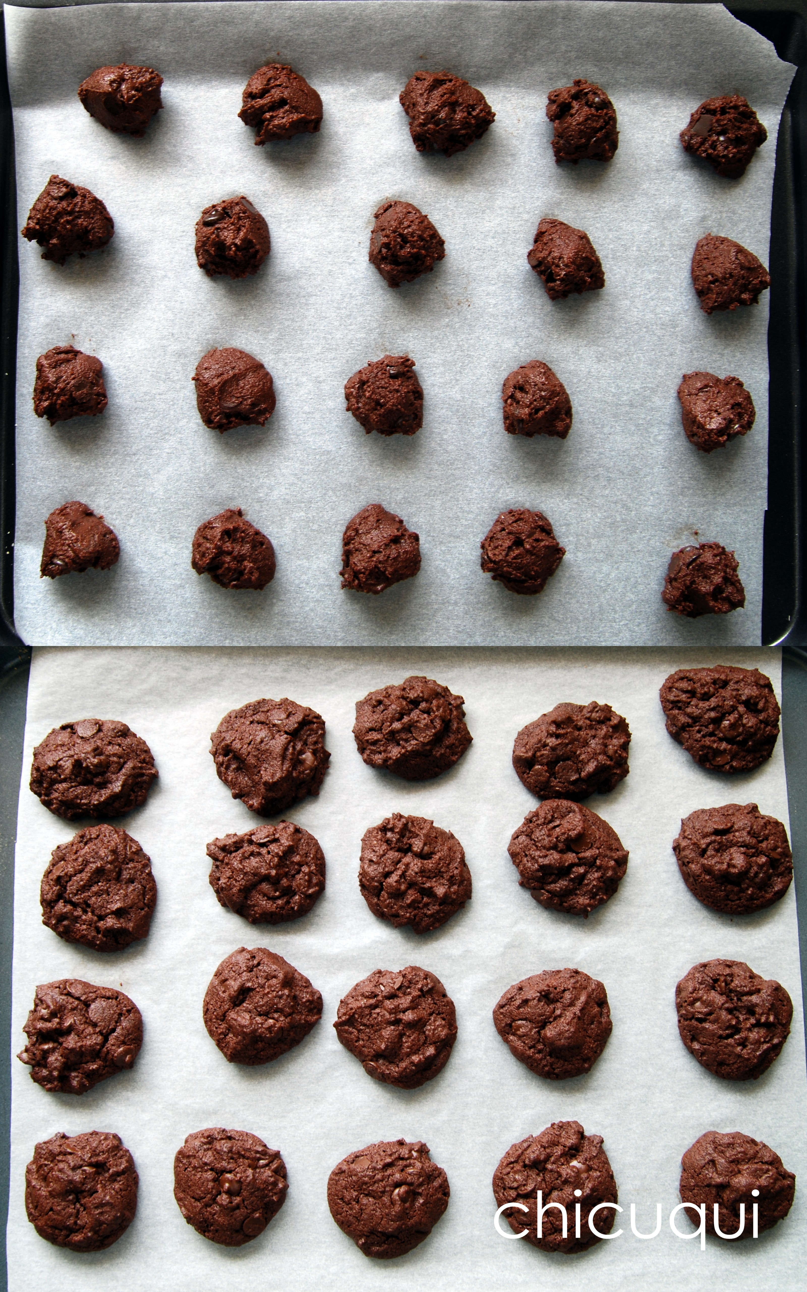 Para que te salgan unas galletas de unos 6 cm de diámetro, cubre la bandeja con unas 20 bolas de masa.
