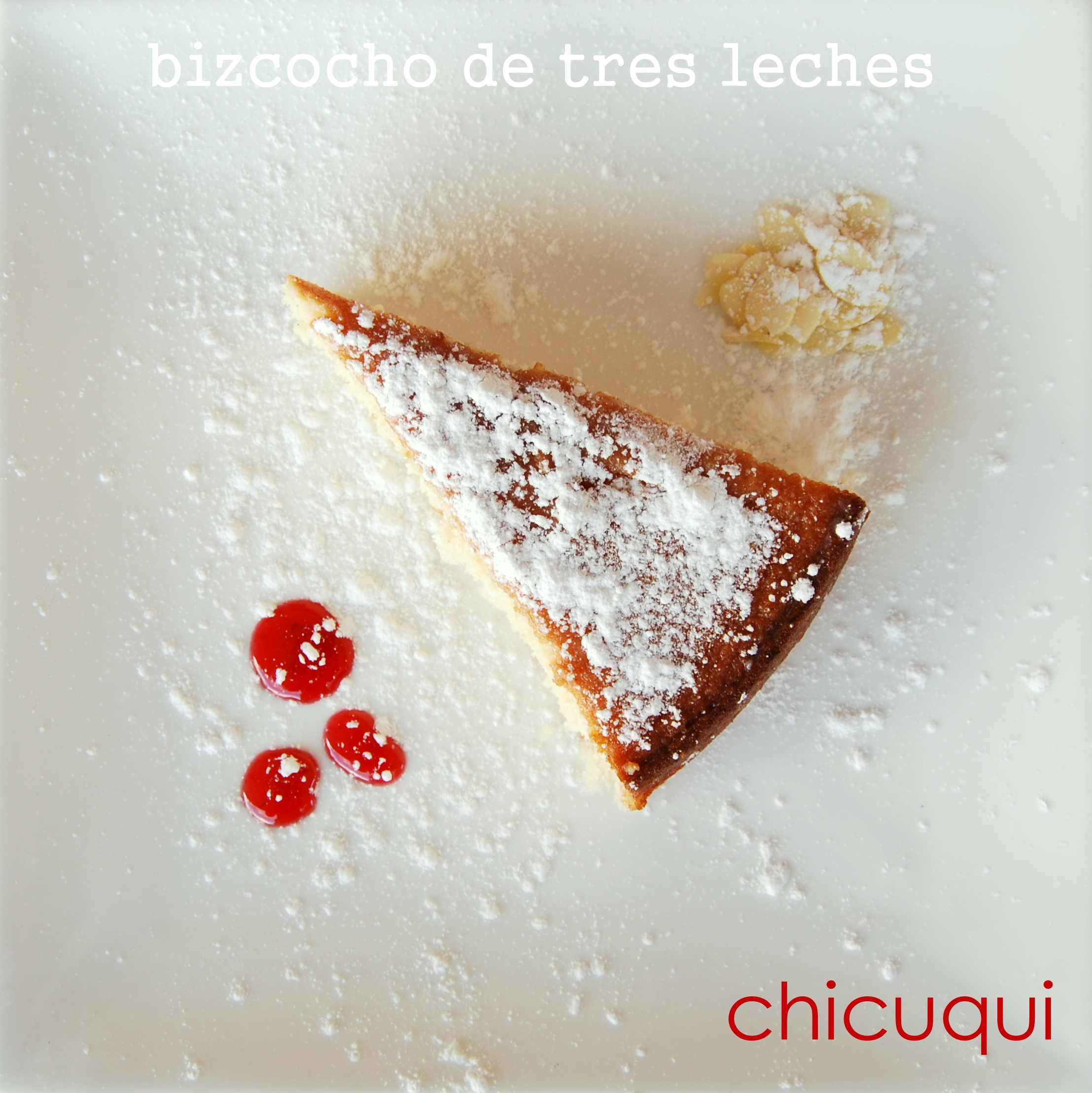 El bizcocho se puede comer tal cual, sin tener que echarle la mezcla de las tres leches aunque ésas, le aportan una textura muy jugosa.