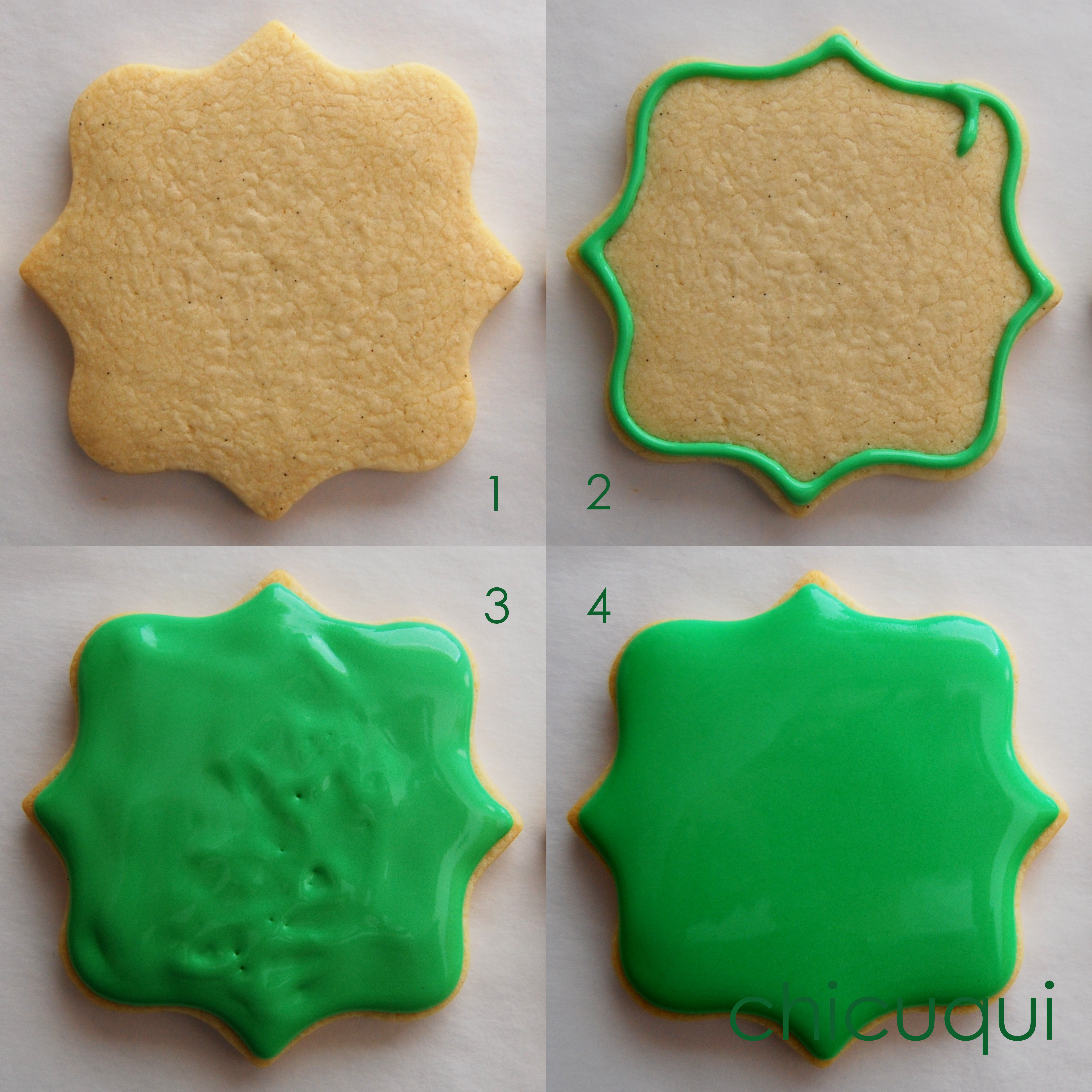 1. Puedes utilizar cualquier forma de galleta. Yo las horneo y hasta el día siguiente no las decoro.