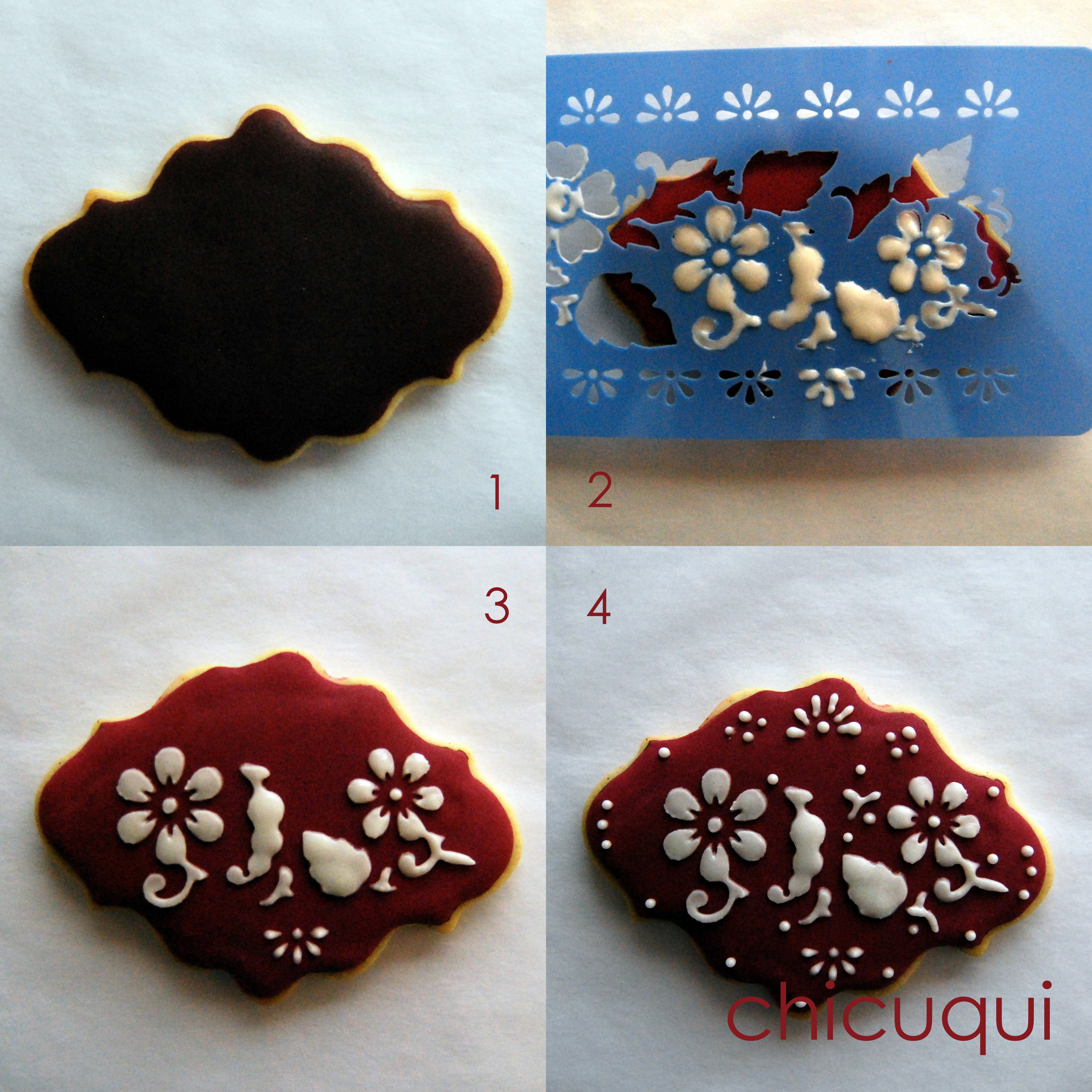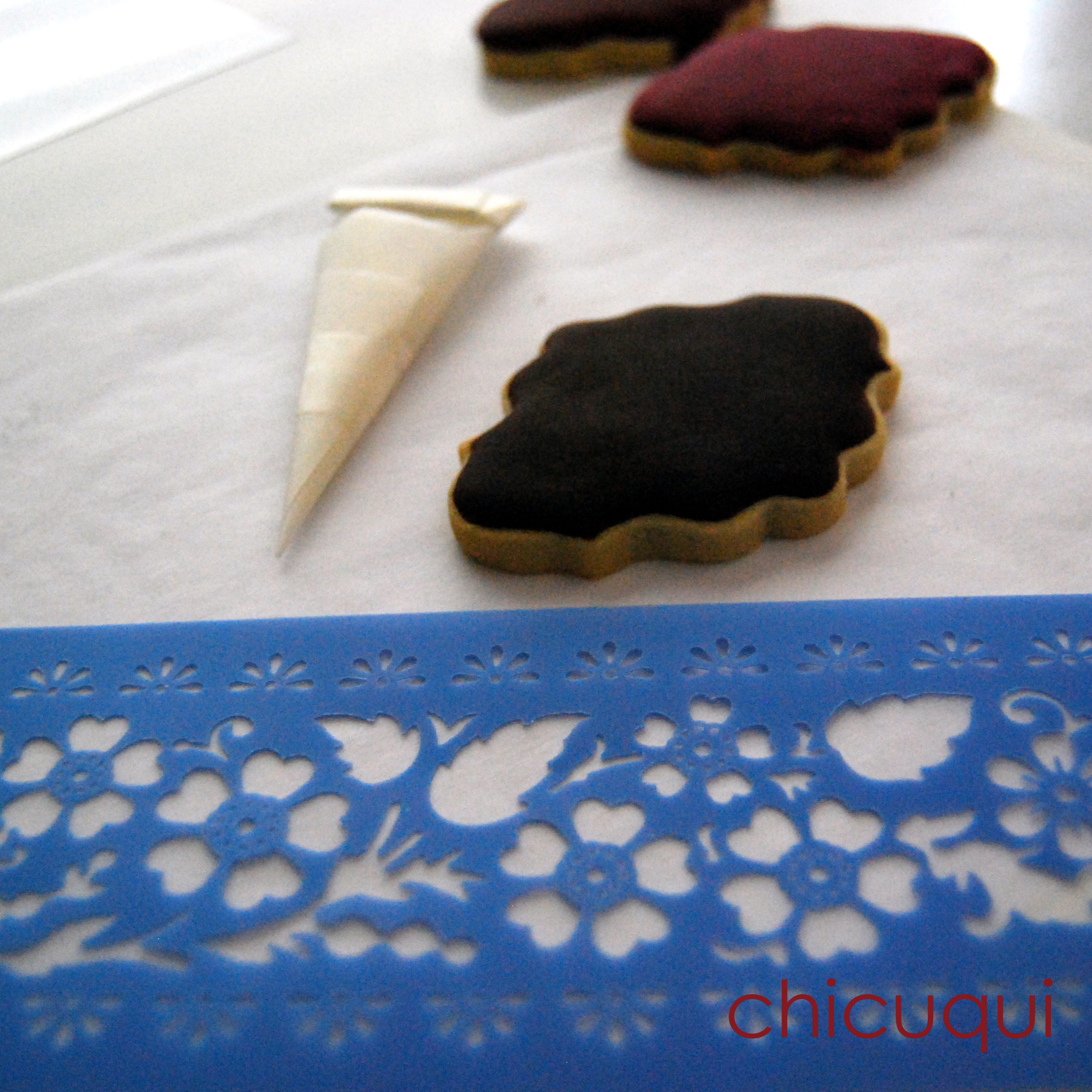 Los stencils son unas plantillas con unos dibujos troquelados, aplica la glasa real sobre ellos y obtendrás el dibujo.
