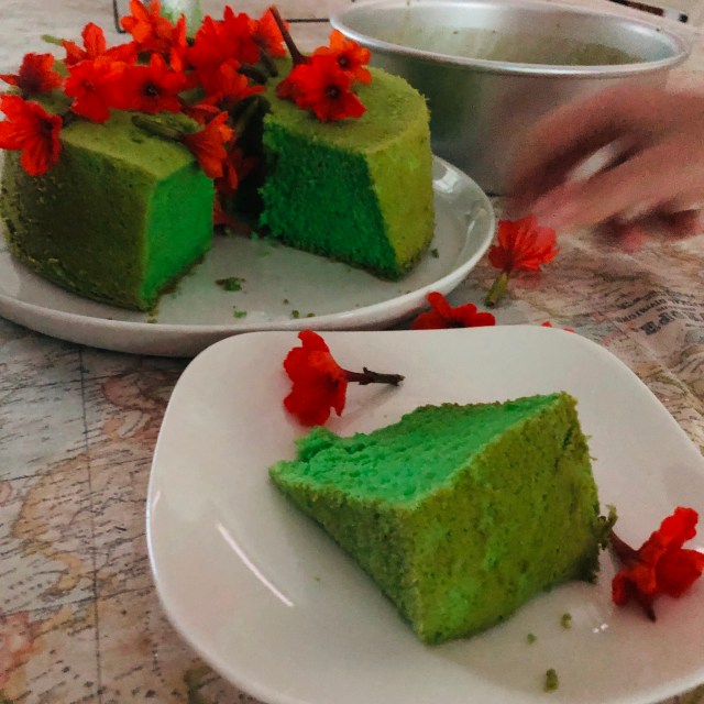 Este Chiffon cake es típico de Singapur así que tenía que aprender a hacerlo si o si y ese color verde que tiene, siempre me ha llamado la atención y es que Pandan, es una hoja con la que se cocinan muchas recetas.